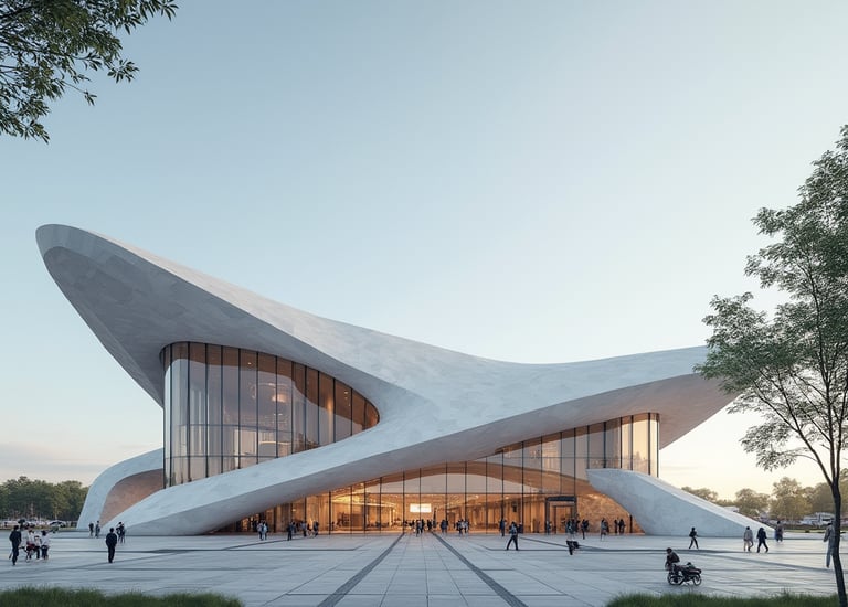 The architecture embodies the sculptural evolution of contemporary public buildings. It rejects static massing in favor of a continuous, flowing gesture—an architectural landscape shaped for people. Through its openness, fluidity, and dramatic structure, the building becomes a symbol of future-forward urban identity and human connection.